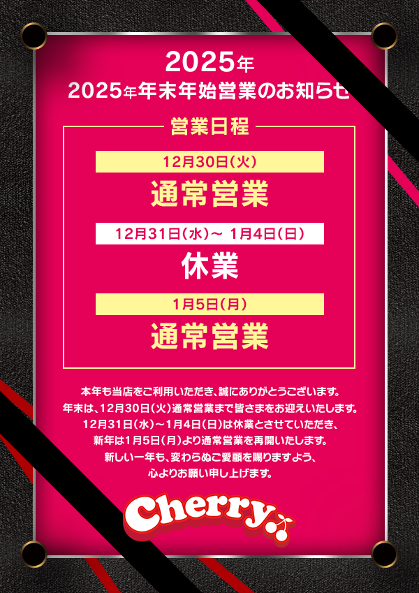 《五反田・品川のガールズバー「Cherry(チェリー)」の新着情報ページです。》